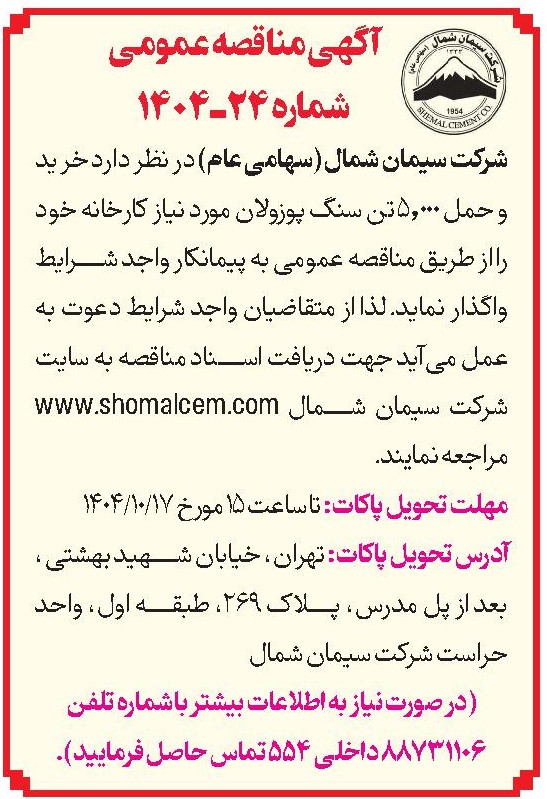 جدیدترین اخبار و رویدادهای شرکت سیمان شمال